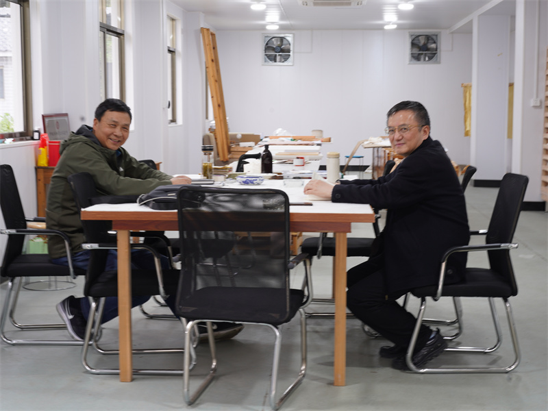 2021.4.14 中國(guó)科技大學(xué)人文與社會(huì)科學(xué)學(xué)院院長(zhǎng)湯書昆來公司指導(dǎo)楮紙古法制作技藝。